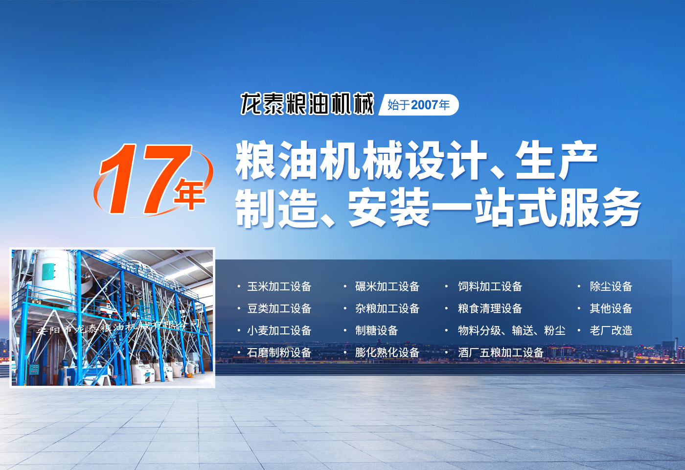 安陽市龍?zhí)┘Z油機械有限公司是一個集糧油機械設計、生產制作、安裝于一體的設備制造商。公司坐落于農業(yè)生產基地河南省安陽市。多年來,公司與科研機構建立了廣泛的技術協(xié)作關系,精心致力于糧食加工設備的技術創(chuàng)新與應用,產品涵蓋整套碾米機械、小麥加工設備、玉米加工設備、雜糧加工設備,飼料加工及油脂設備等多個領域??沙薪尤椎慕昏€匙工程,提供從資金預算,整體規(guī)劃,土建設計,設備制造、安裝、培訓,售后保障等一站式服務?! ∥夜緭碛歇毩⒆灾鬟M出口權及產品原產地注冊證書。產品除國內市場外,多次出口到,亞洲,非洲,南美洲、東歐等多個國家及地區(qū)。為國內外多家企業(yè)提供了工藝先進,技術過硬,節(jié)能的糧油設備,深得國內外客戶的一致好評。 公司以“質量就是生命”為宗旨,根據(jù)客戶不同需求,采用合理的技術方案,為客戶量身打造投資建廠方略,爭取實現(xiàn)高收益。公司生產過程嚴格按照合同和圖紙設計要求,生產符合設計標準、檢測標準、質量優(yōu)良的產品供給客戶,并提供安裝、調試、培訓,保修期免費維修,終身免費咨詢等服務,確保設備在長期使用中穩(wěn)定運行。 龍?zhí)?愿與您一起攜手共創(chuàng)輝煌!